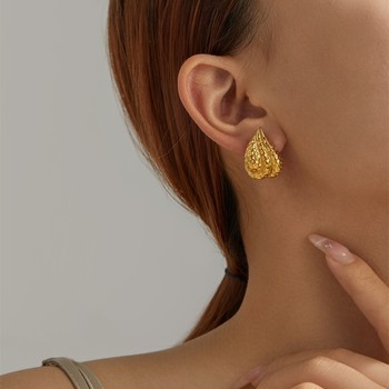Premium Mulheres Retro Drip Folha Stud Brincos À Prova D' Água 18K Banhado A Ouro Artesanato Presente De Aço Inoxidável para Ocasiões